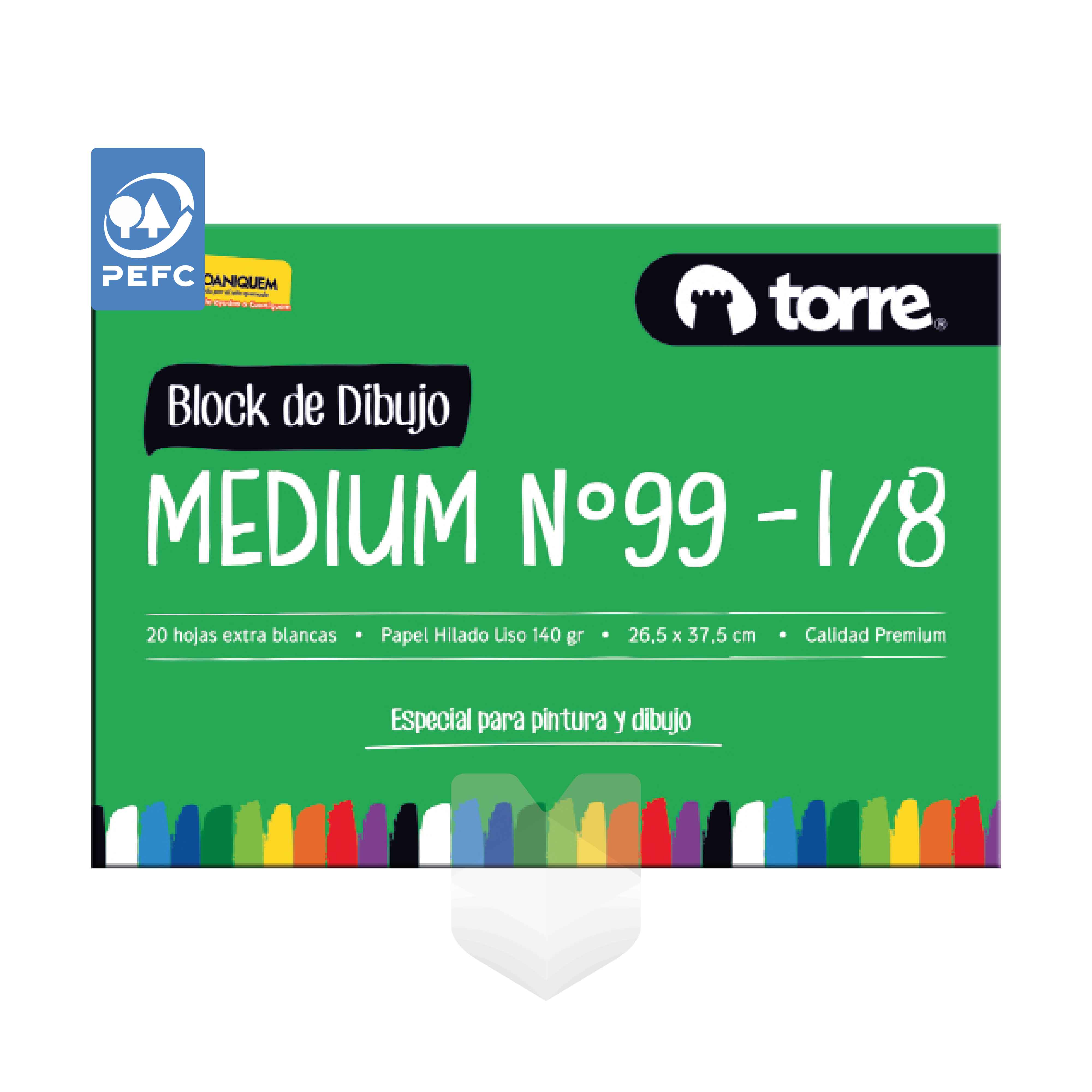 Block Dibujo M-99.Papel hilado Nº9 140 gr.Formato 1/8 26.5 x 37.2 cm.20 hojas.Producto Nacional.