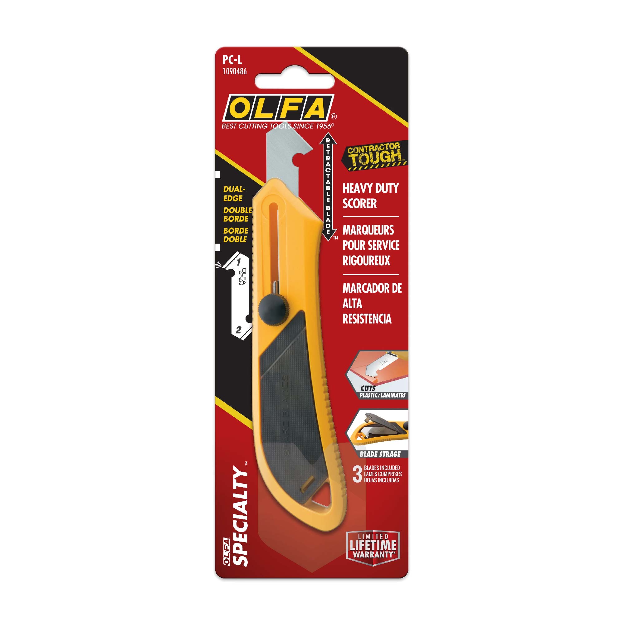 Mango de plástico ABSSistema de Seguro ManualFijación con tornillo de máxima seguridadIncluye 2 hojas de repuesto en su interiorApto para diestros y zurdos