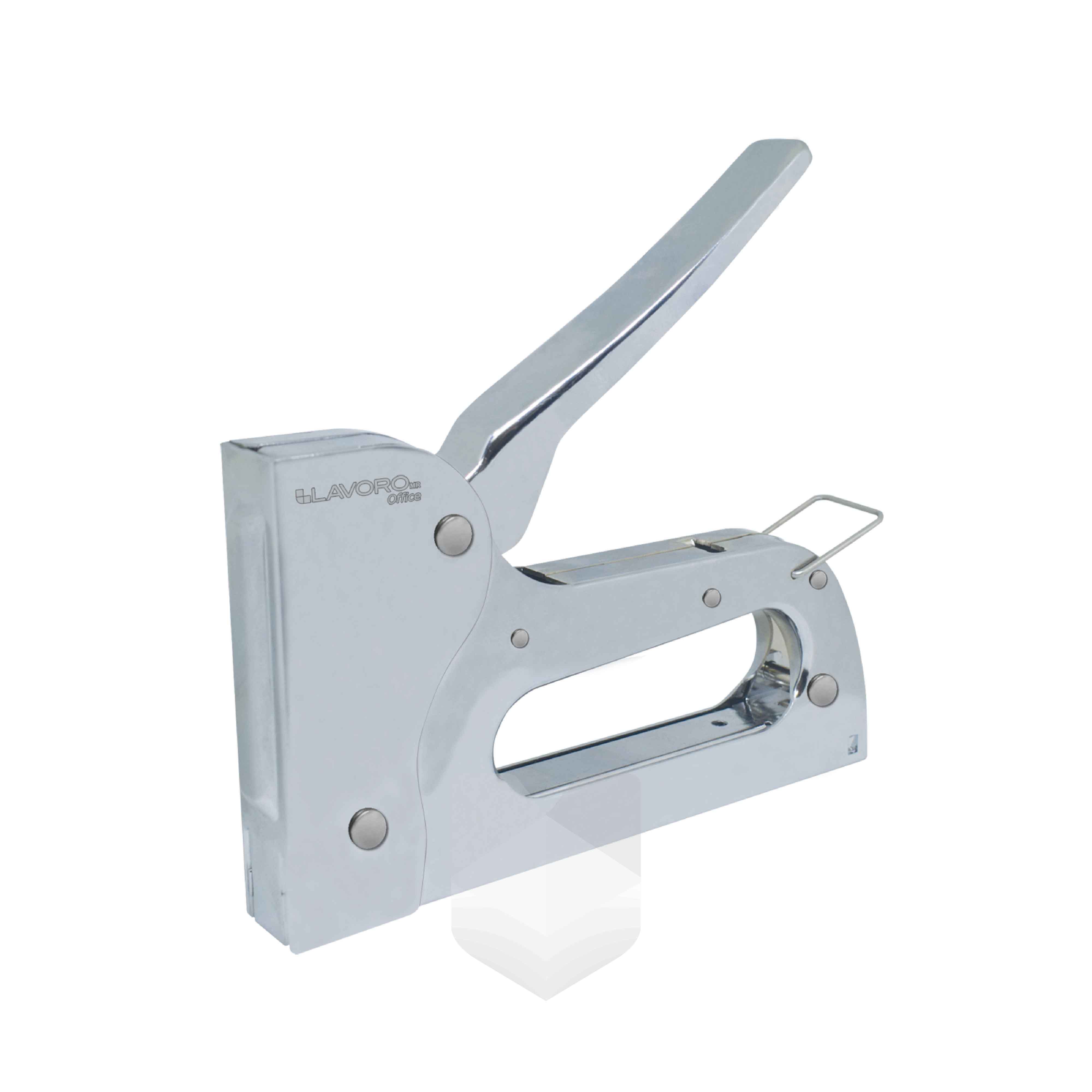 Engrapadora Tipo Pistola Metálica Dimensiónes de 16.5 x 10 x 2.3 cm Ideal para trabajos manualidades. decoración y trabajos de cableado. Para grapas de tamaño: 53/6. 53/8. 53/20. 53/12