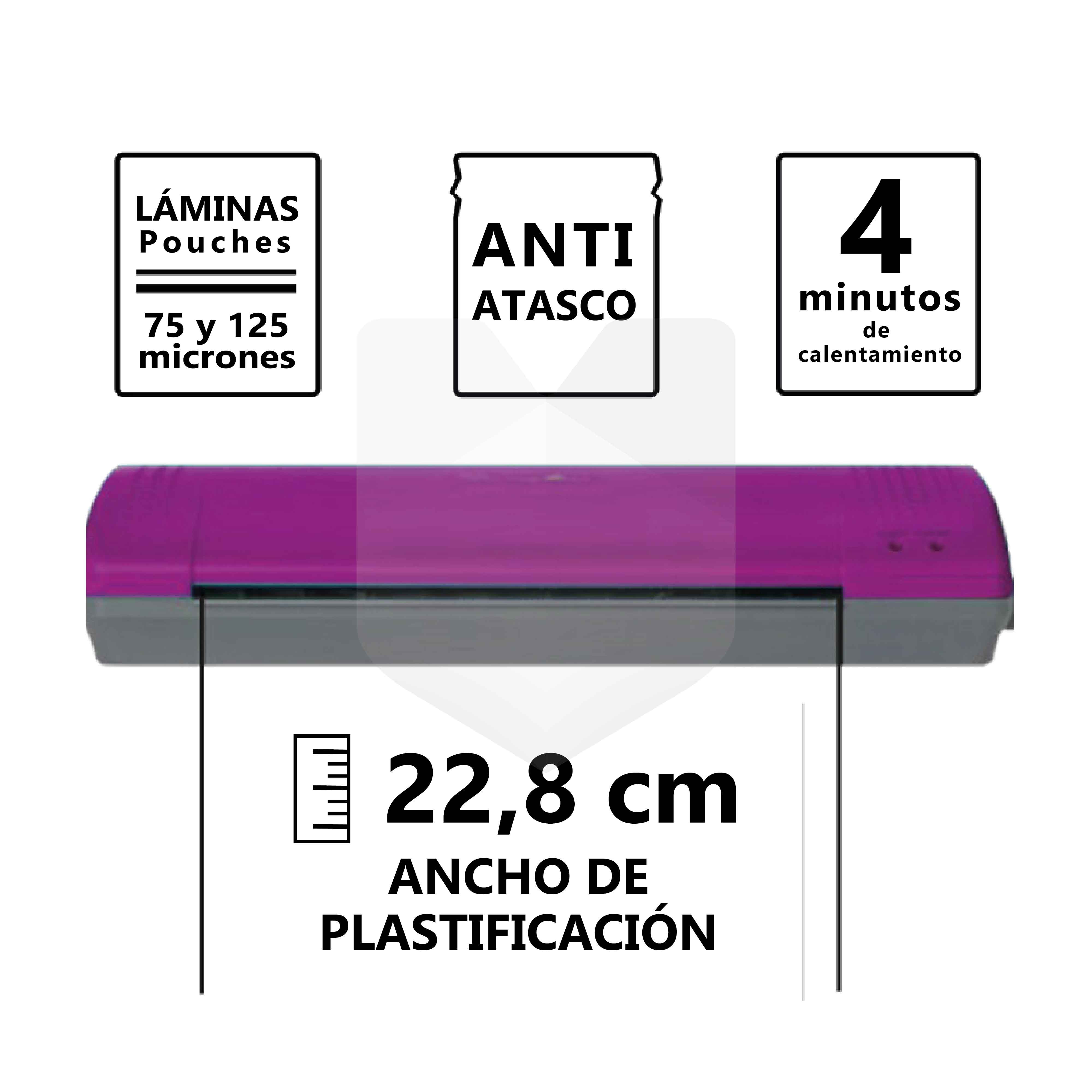 Plástificadora Inspire Plus. cuenta con un diseño compacto y elegante. Puedes laminar fotos. certificados. documentos y otros recuerdos. Ésta te entrega una opción ideal para laminar en casa o negocio personal. con un tiempo de calentamiento corto y configuraciones simples y sencillas para entregarte el mejor resultado y alta calidad.