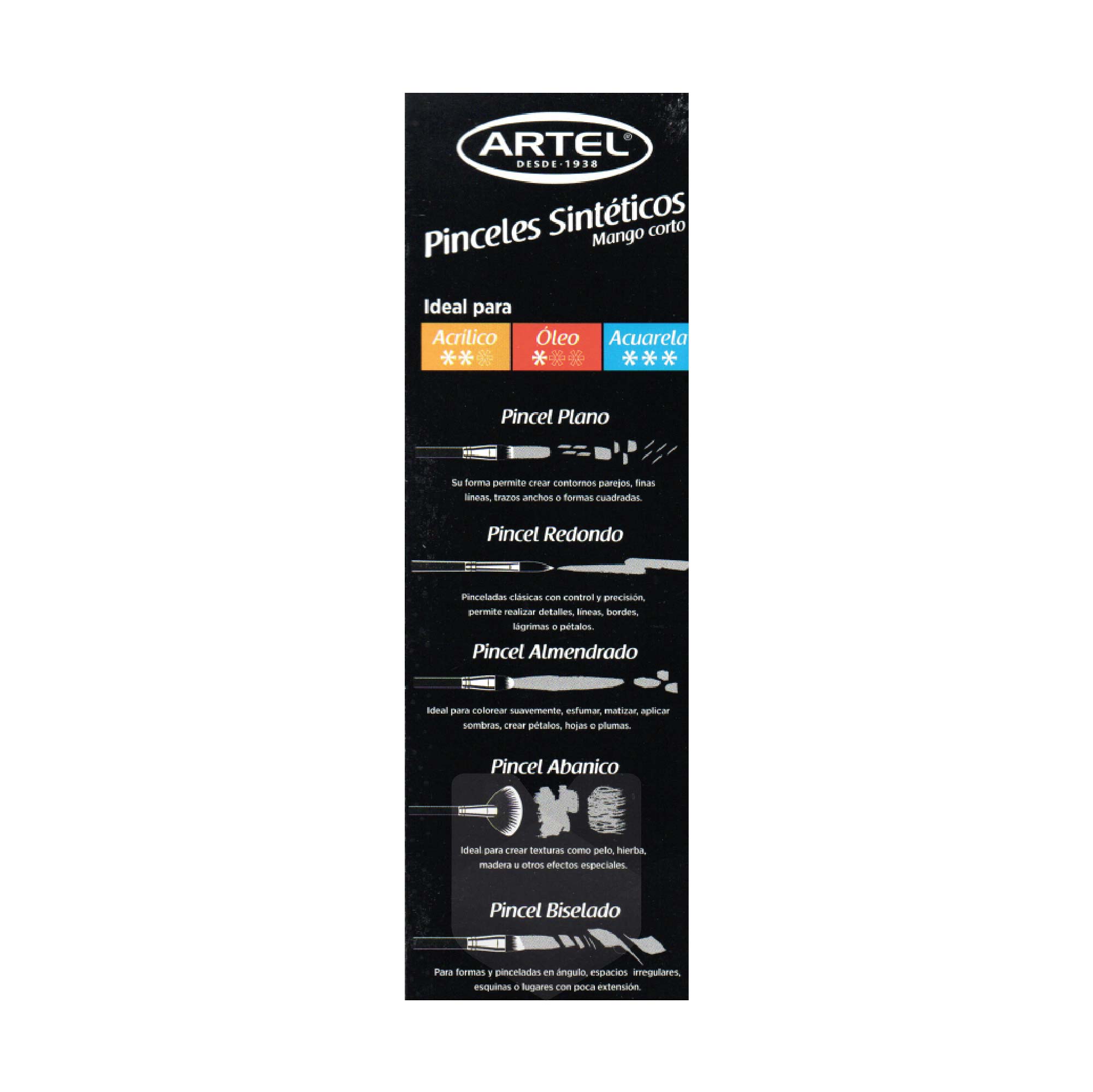 Contienes 4 pinceles redondos N° 0/5.2.4.6 y un pincel plano N°12Pinceles de mango corto que permite una mayor libertad de movimientoMango color azul de madera de abedul